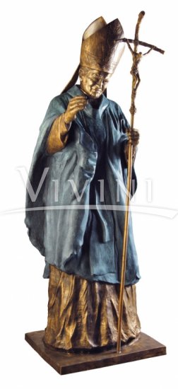 Przecudny posąg ukazujący postać papieża Polaka Jana Pawła II wykonany w całości z brązu przez włoskich artystów rzezbiarzy.