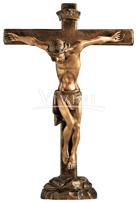 Na krzyżu umieszczony jest wizerunek Jezusa Chrystusa w koronie cierniowej.