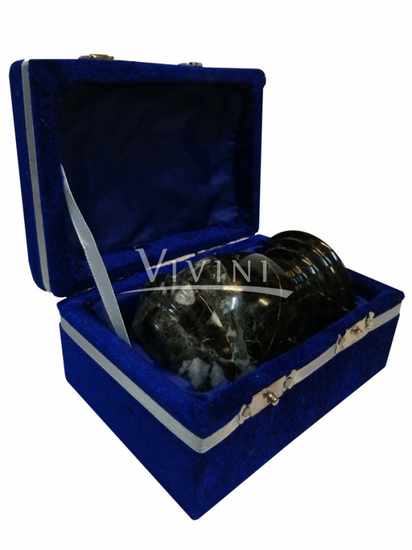Relikwiarz kamienny wykonany z marmuru, otwierany od dołu za pomocą śruby.