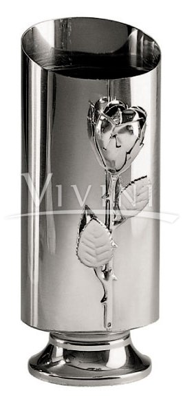 Wazon wykonany ze stali nierdzewnej z aplikacją przedstawiającą różę. Montowany do podłoża.